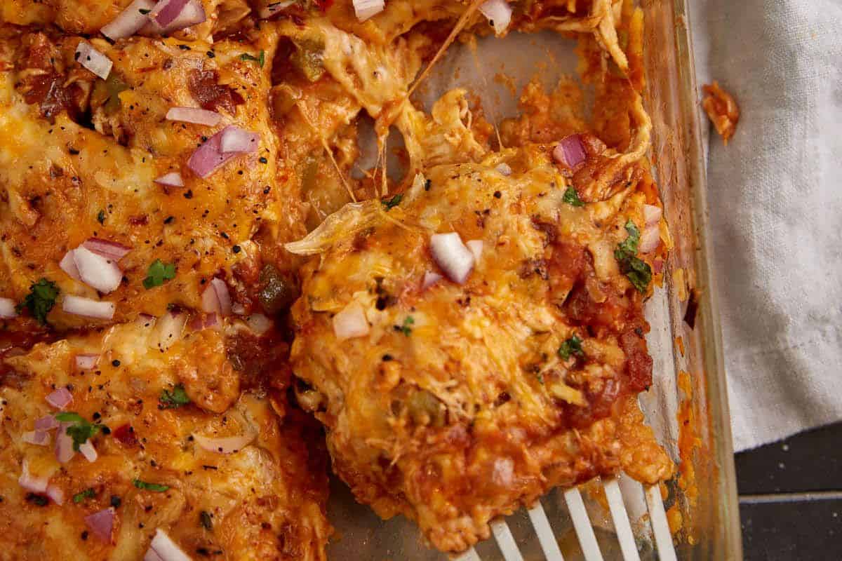 Get the Recipe: Chicken Enchilada Layered Casserole (Easy Homemade Sauce)