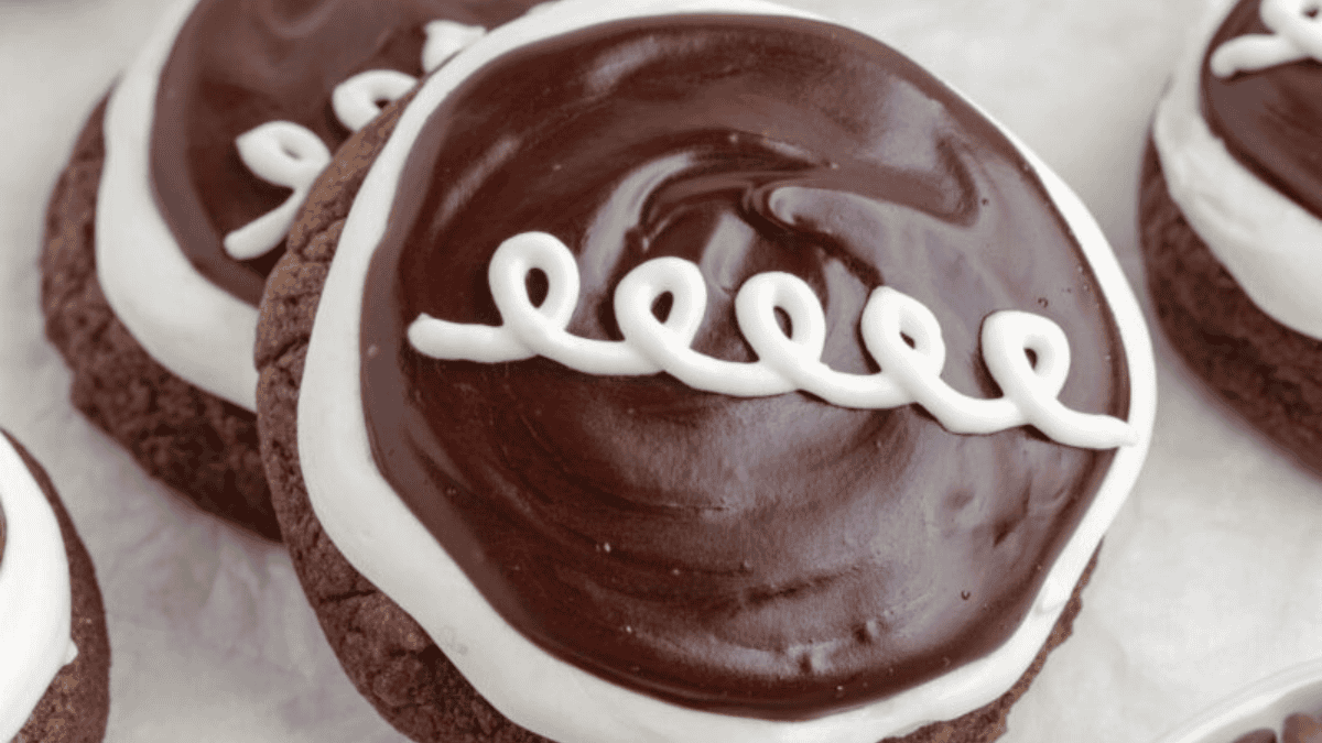 Hostess Cupcake Cookies combine chocolate cake mix, marshmallow frosting, and ganache for an easy, nostalgic treat everyone will love!