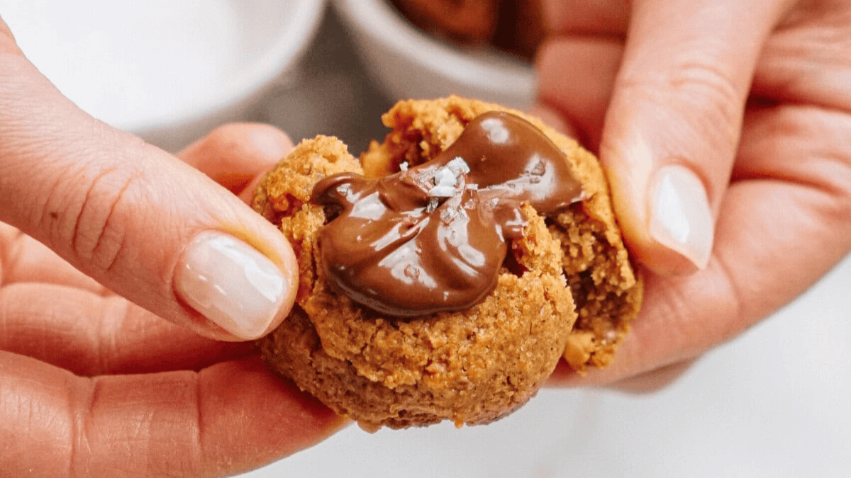 These Peanut Butter Thumbprint Cookies are warm peanut butter cookies, stuffed with Nutella and sprinkled with a little salt. Naturally gluten-free!