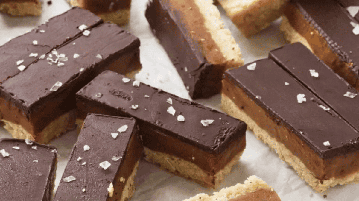 Billionaire Bars are made with a crunchy shortbread base, a gooey, sweet-salty caramel layer and topped with rich chocolate ganache.