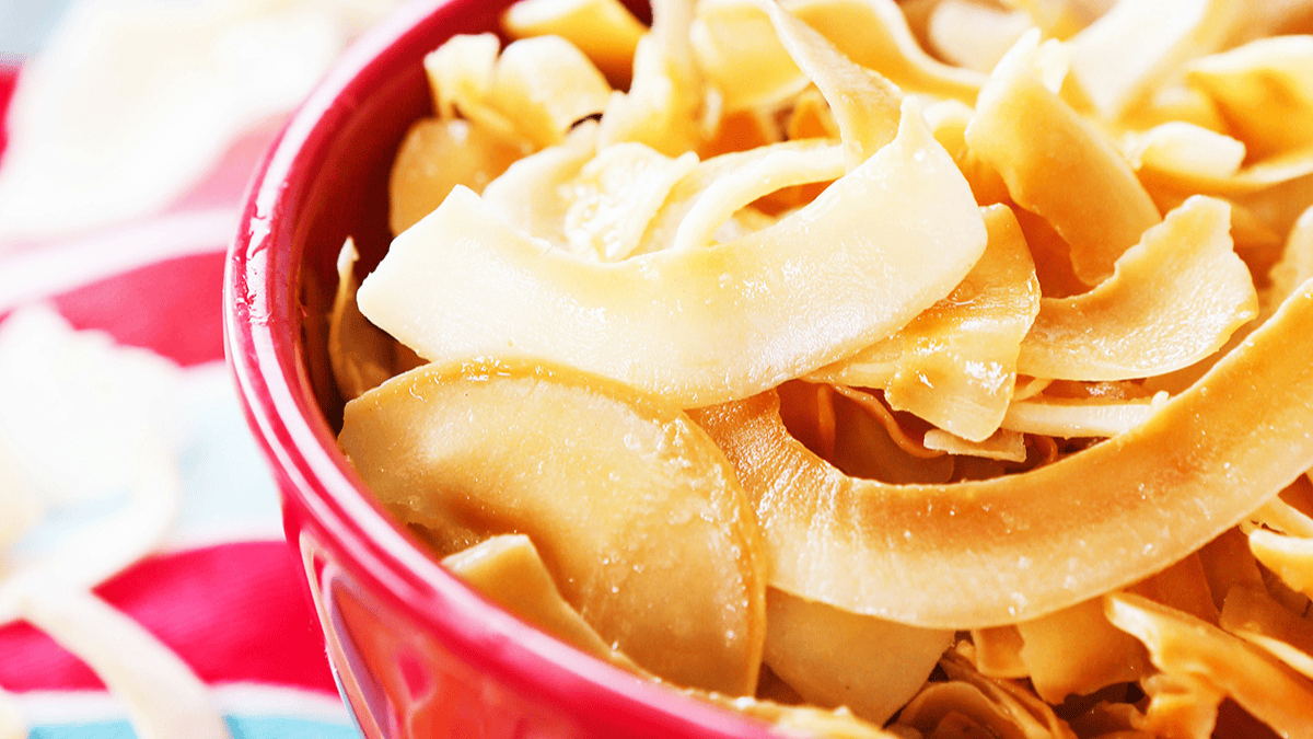 This toasted coconut chips recipe is the perfect sweet and salty snack that will satisfy any craving! Whole30 replacement for popcorn!