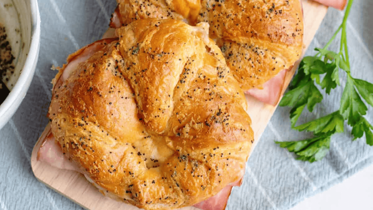 These baked ham and cheese croissants are warm, flaky, and buttery, filled with savory ham and melty cheese.