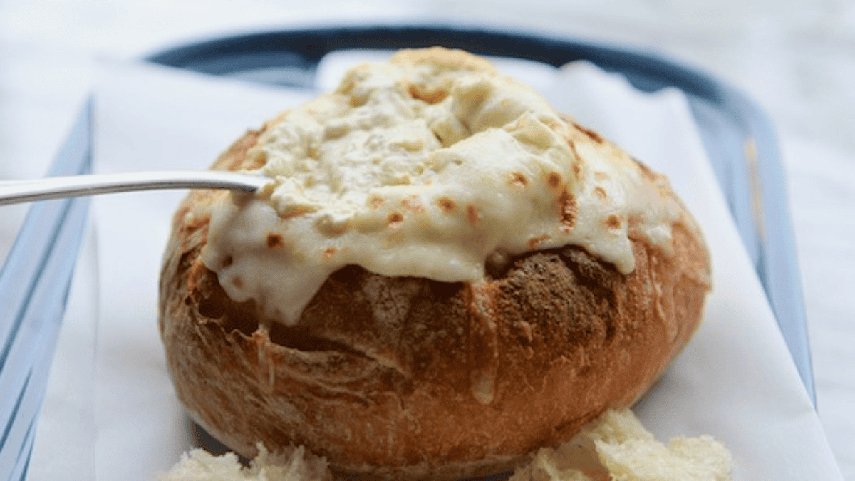 Get the Recipe: Hot And Cheesy Jalapeno Artichoke Dip In A Bread Bowl