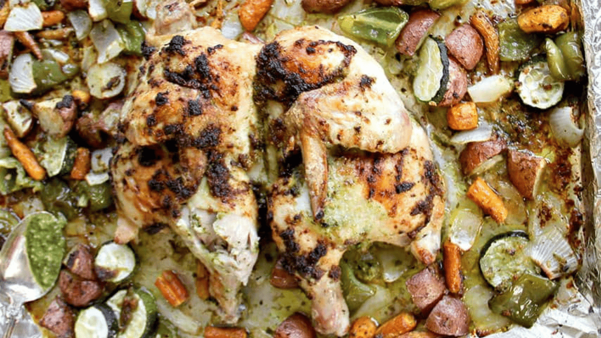 Get the Recipe: Pesto Chicken With Roasted Vegetables