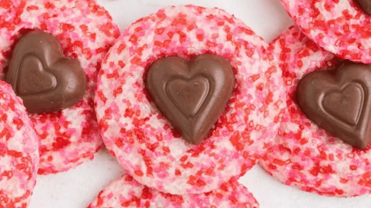 These Valentine’s Blossom Sugar Cookies require just sugar cookie dough, sparkling sugar, and chocolate hearts for a simple, sweet delight!