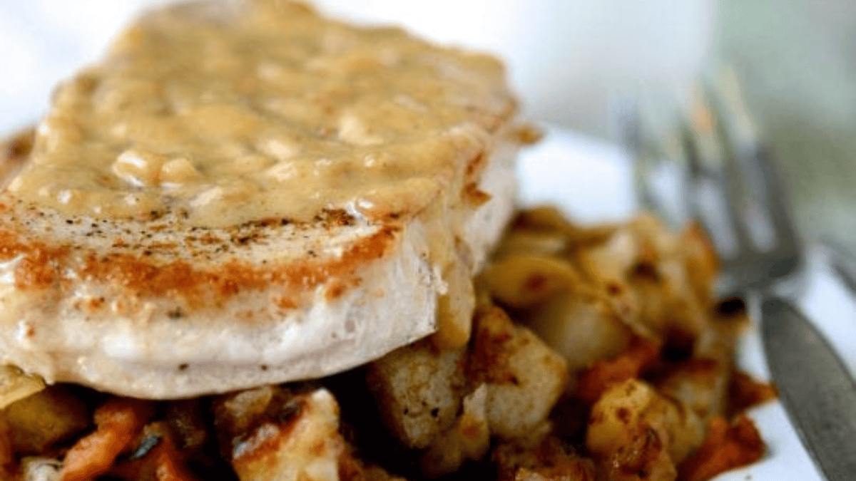 Get the Recipe: Pan Seared Pork Chops With Gravy & Hash