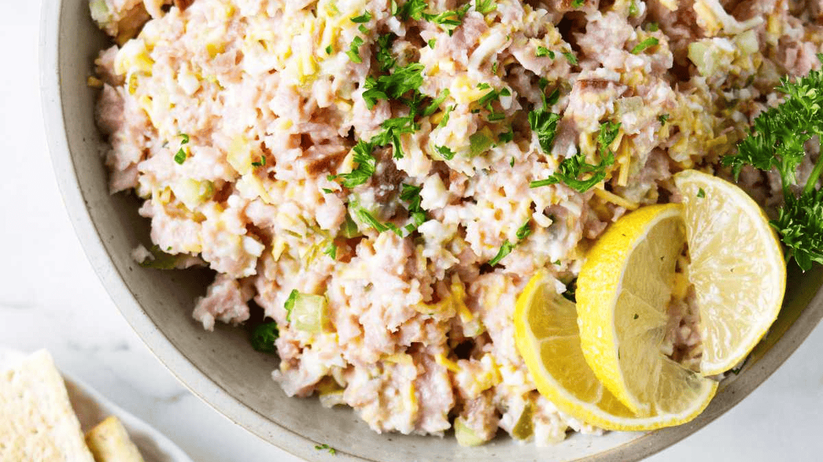 This recipe makes a quick and easy based for appetizers and it is the perfect way to use up leftover ham. Ideal for sandwiches, pasta salads, or as a chip dip.