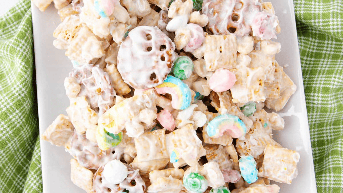 Lure a lucky leprechaun with this easy-to-make leprechaun bait. A no-bake snack mix for St. Patrick’s Day!