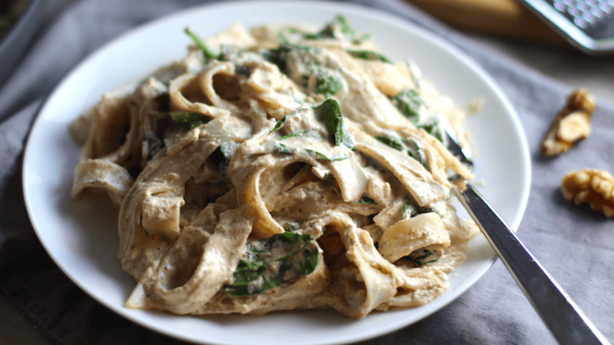 Get the Recipe: Walnut Cream Sauce Pasta With Ricotta And Spinach